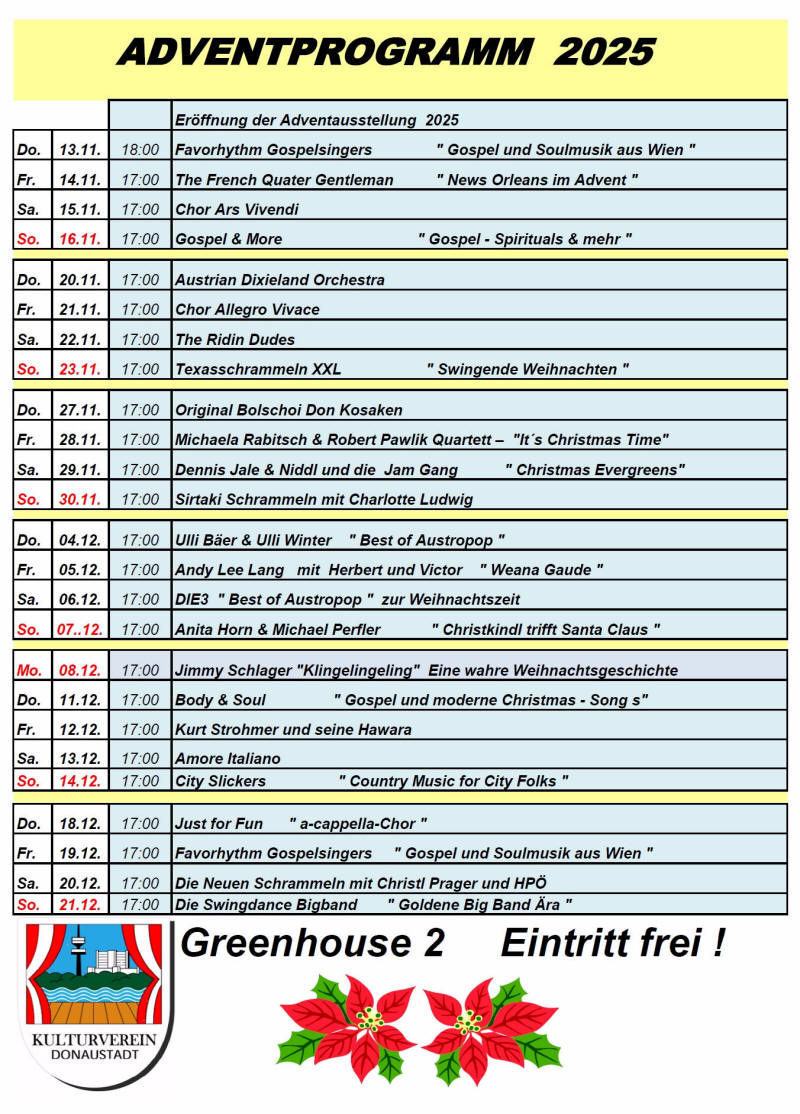 Musikprogramm des Kulturverein Donaustadt im Greenhouse 2